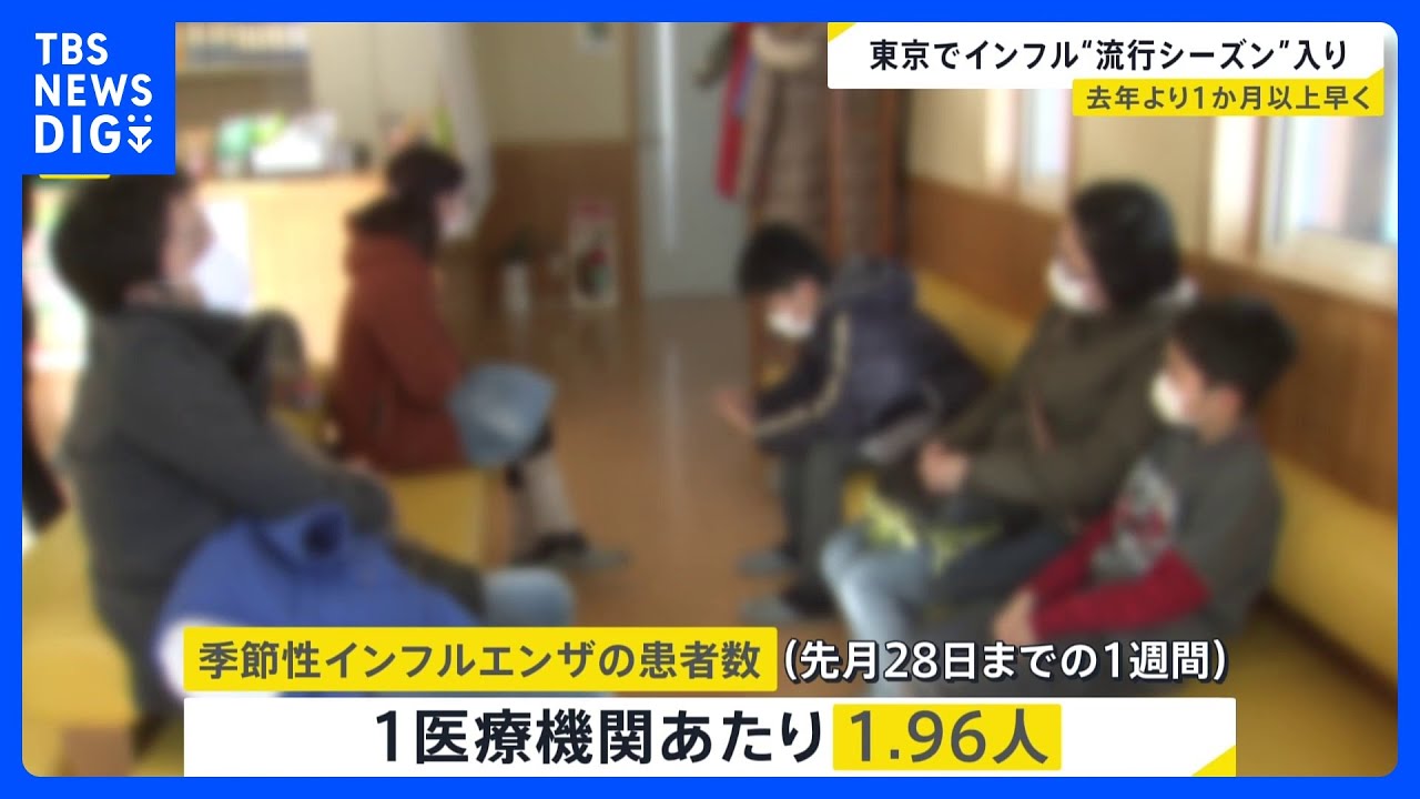 都によりますと、先月28日までの1週間に報告された1医療機関あたりの季節性インフルエンザの患者数は「1.96人」。去年に比べて1か月以上早い流行シーズン入りとなり、11月より早く発表されたのは2023年度以来、2年ぶりです。