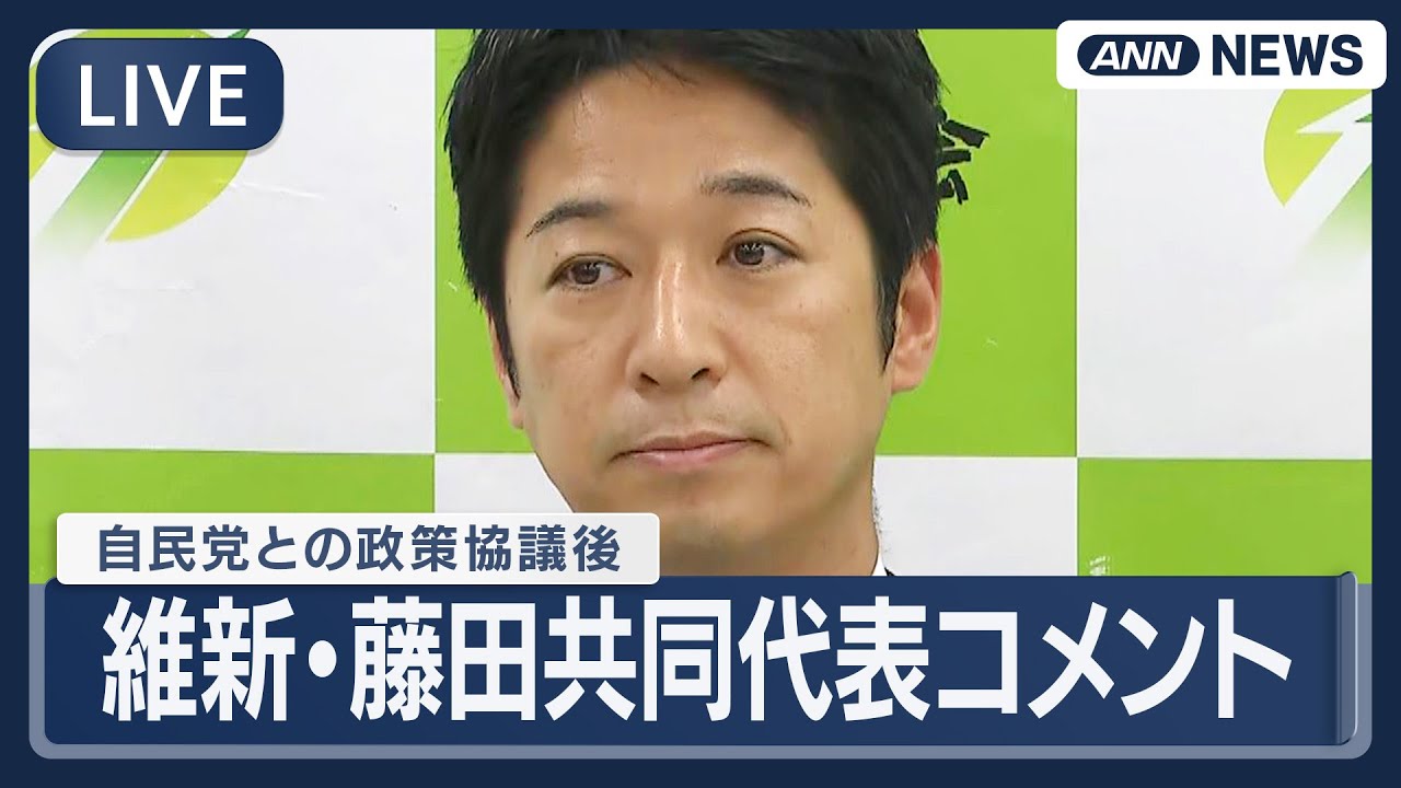 自民党との政策協議を終えた日本維新の会・藤田文武共同代表のコメントをライブ配信します。