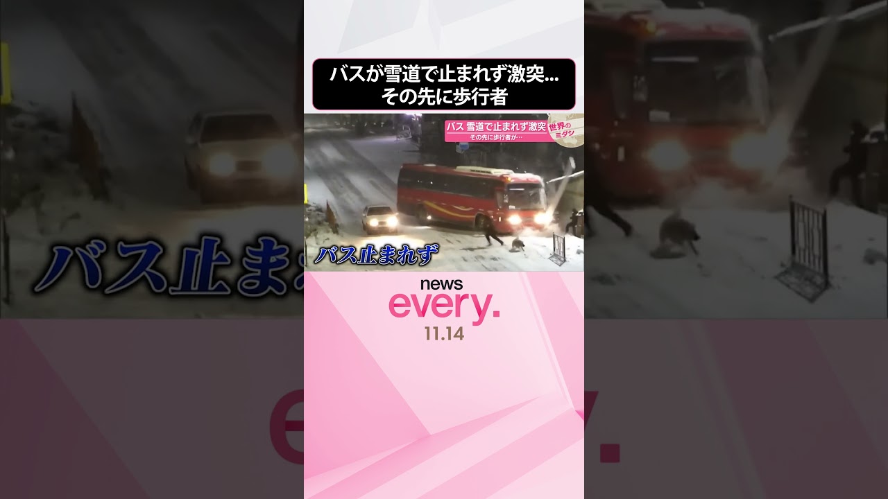 今週起きた世界のニュースを伝える「世界のミダシ」。ロシア南東部・イルクーツク州の「バスが雪道で止まれず激突 その先に歩行者が…」についてです。