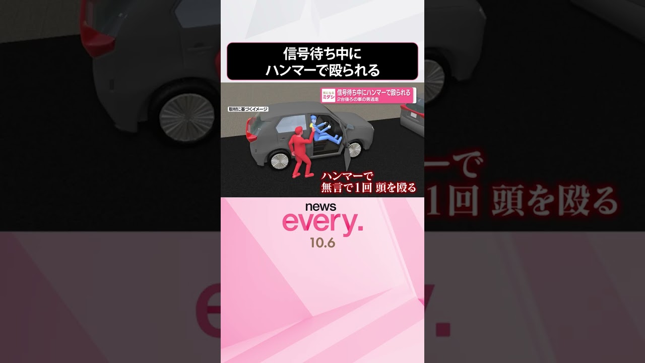 その後、男はいったん自分の車に戻りましたが、再び男性の元にやって来るとその手にはハンマーが。無言で1回、頭を殴ってきたということです。