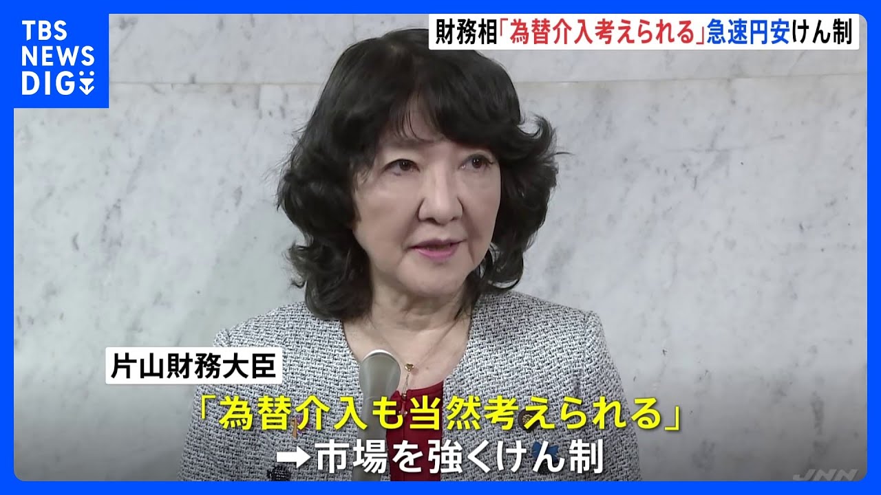 円相場が1ドル=157円台半ばまで急速に円安が進んだことをうけ、片山財務大臣は「介入も考えられる」と市場をけん制しました。