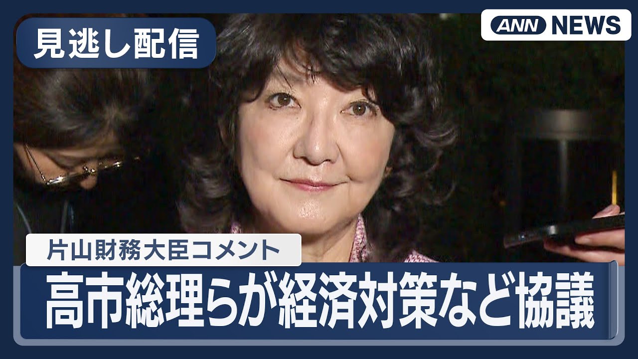 高市総理大臣が片山財務大臣らと総理公邸に集まり、経済対策などを巡って詰めの協議を行いました。