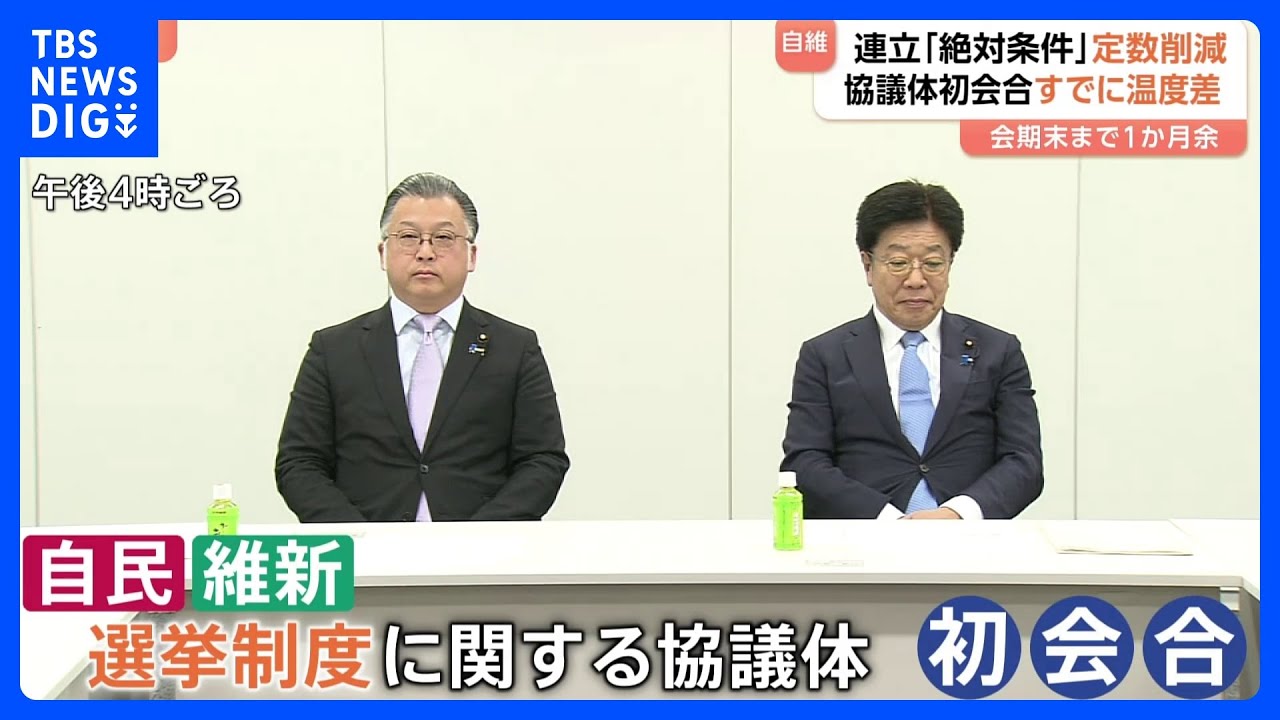 自民党と日本維新の会は連立政権の合意文書に盛り込んだ衆議院の議員定数削減に関する議論をスタートさせました。ただ、早くも温度差が浮き彫りとなっています。