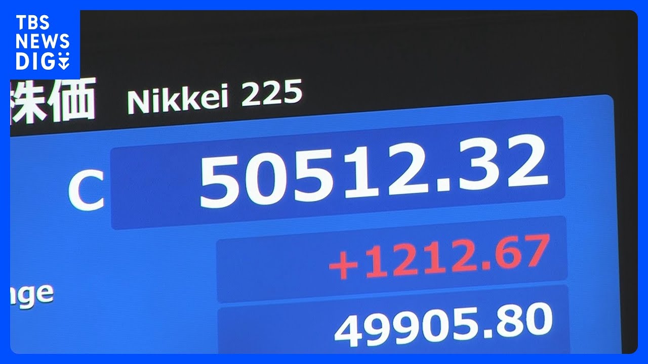 週明けの東京株式市場で日経平均株価は先週末より1212円値上がりし、5万512円できょうの取引を終えました。史上初めて終値でも5万円を突破しています。