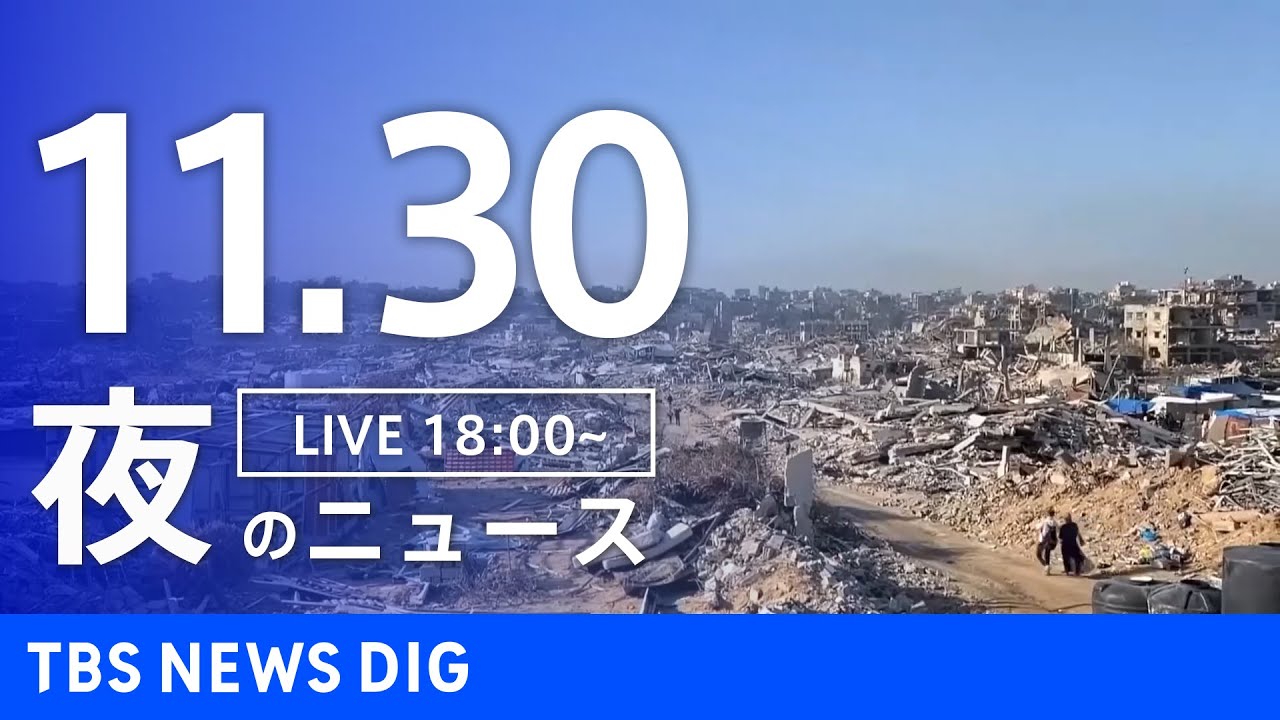 11月30日(日)の夕方から放送された最新のニュースをダイジェストでお届けします。