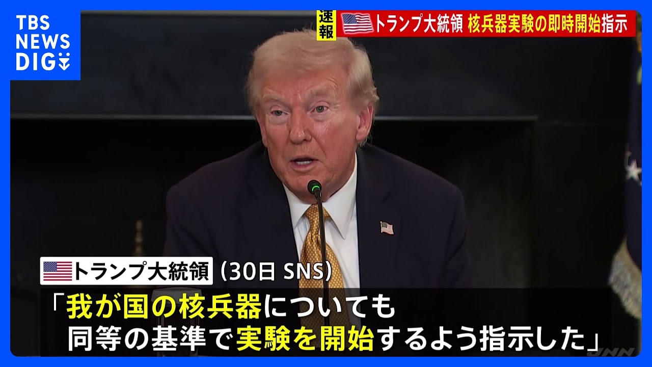 アメリカのトランプ大統領は国防総省に対し、核兵器実験を直ちに開始するよう指示したと明らかにしました。核実験が実際に行われれば1992年以来33年ぶりとみられます。