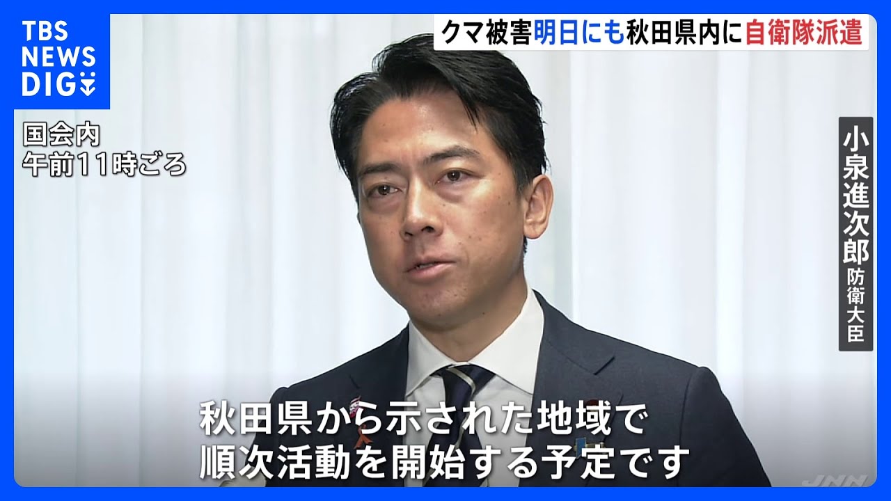 秋田県内でのクマ被害について、小泉大臣は自衛隊による支援活動をあすにも開始すると明らかにしました。