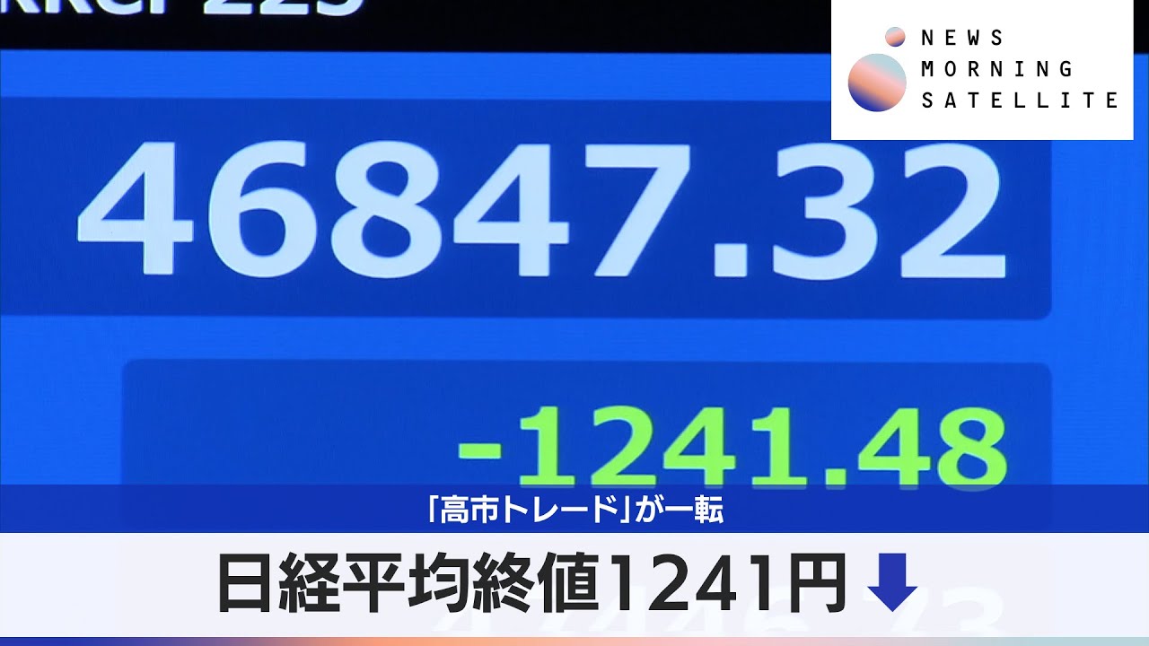 14日の日経平均株価の終値は先週末に比べて1241円安い、4万6847円となりました。終値で下落幅が1000円を超えるのは、トランプ関税の影響が懸念された4月以来、半年ぶりです。14日の日経平均は一時1500円以上、下落する場面もありました。公明党の連立離脱によっていわゆる「高市トレード」が一転したことに加え、米中貿易摩擦の激化が懸念され、投資家心理が悪化しました。一方、国内の金価格の指標とされる田中貴金属工業の金の店頭販売価格が1グラムあたり2万2463円となり、過去最高値を更新しました。