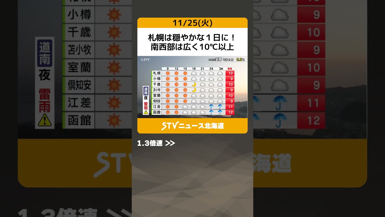 2025年11月25日(火)北海道の天気予報を、どさんこワイド朝で天気コーナーを担当する増山純也予報士がくわしく解説します。(2025年11月25日放送)