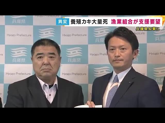 兵庫県の瀬戸内海で養殖のカキが大量死する被害が相次いでいる中、漁業協同組合が斎藤知事に対策などを求める要望書を提出しました。