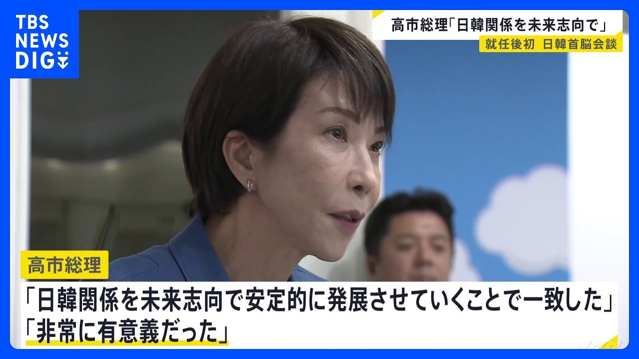 高市総理は韓国の李在明大統領と初の首脳会談を行い、両首脳は日韓関係を未来志向で発展させることで一致しました。